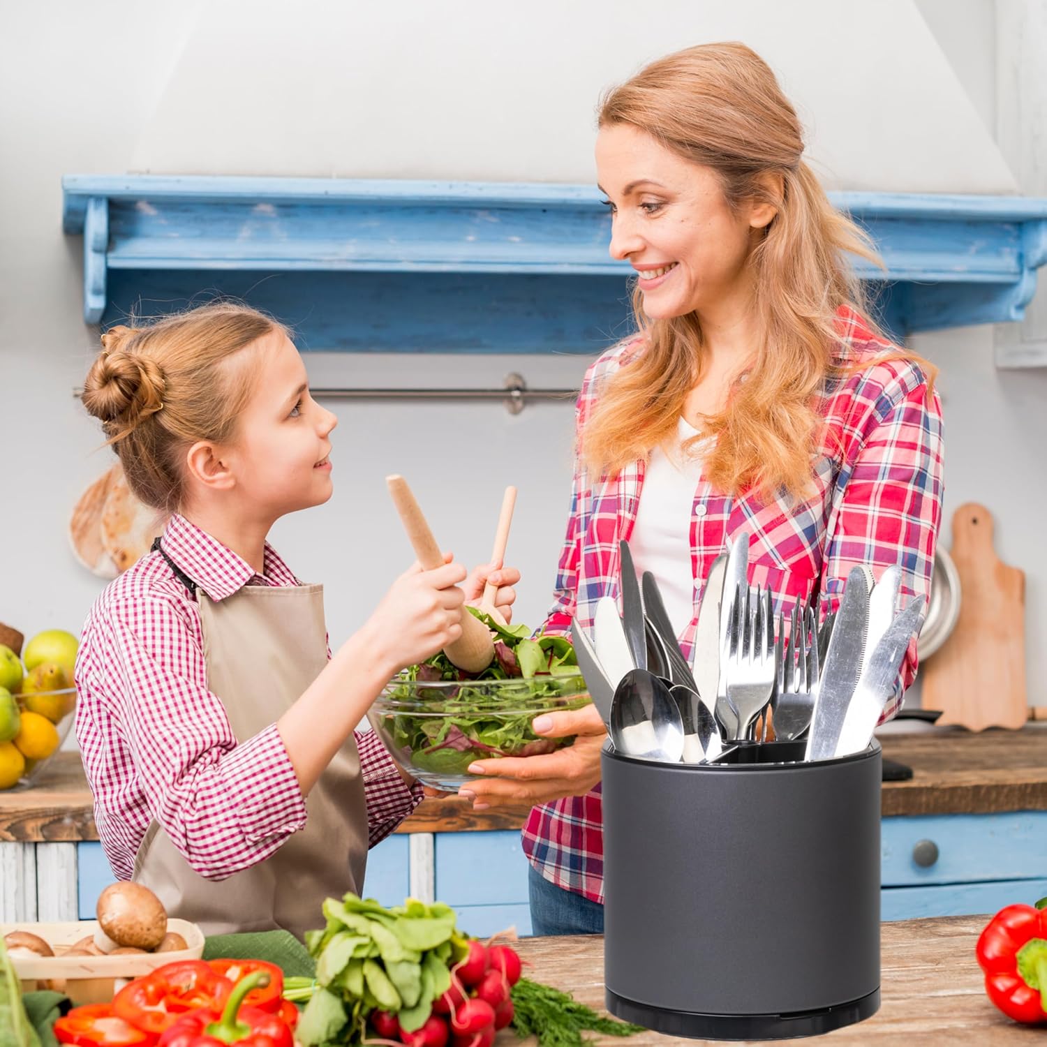 - Smooth 360° Rotation: Experience unparalleled convenience with our smooth-gliding, 360-degree rotation feature. Simply spin the holder to access any utensil you need, eliminating the frustration of searching through a tangled mess. This innovative design ensures that your utensils are always within easy reach, making your kitchen tasks more efficient and enjoyable.
