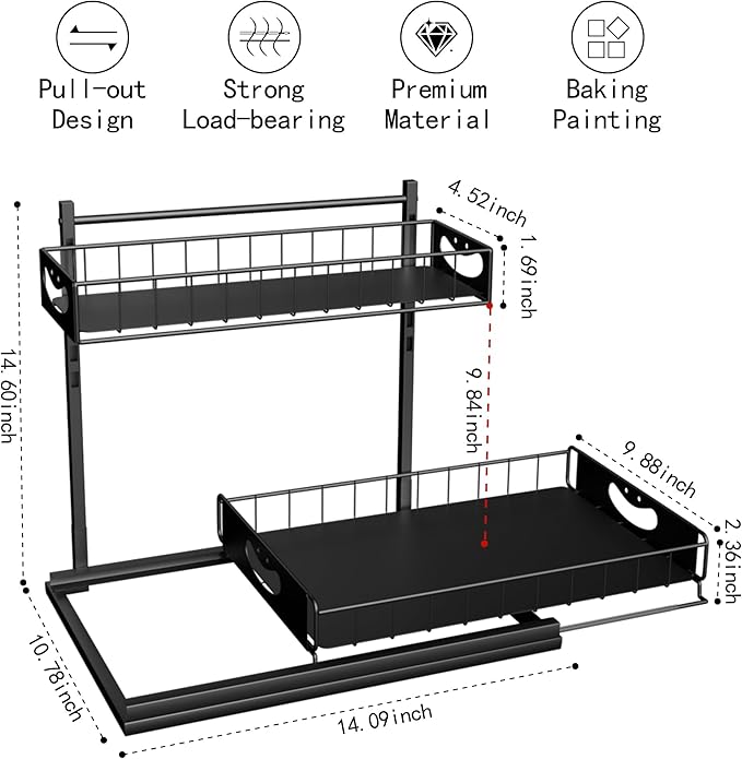 - 2-Tier Pull-Out Design: Our Pull out cabinet organizer Features sliding drawers with a top and bottom basket, providing easy access to your items and maximizing storage space.Suitable for storage and organization at home storage cabinet , kitchen organization,closet organizers and storage.