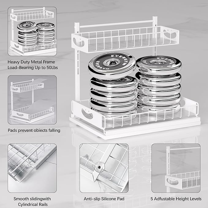 - Easy to assemble and stable: Comes with all necessary hardware and instructions for quick setup. The sturdy design ensures stability even when fully loaded. It is a great helper for kitchen storage, under desk storage, and bathroom storage. can also serve as a bathroom counter organizer cabinet organizer、shelf organizer,under kitchen sink organizer,organizador de baño,under bathroom sink organizer,cupboard organizers and storage,pantry shelves,bathroom cabinet organizer.