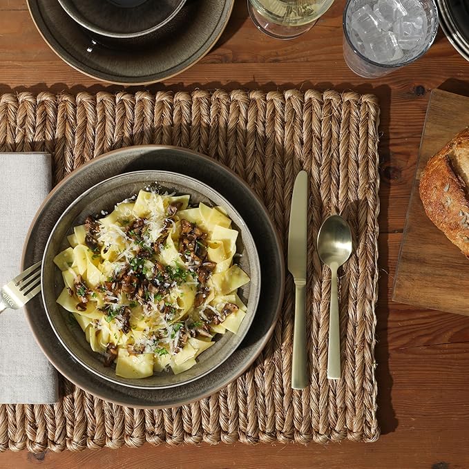 - WEAR-RESISTANT STONEWARE: Sturdy stoneware plates and bowls crafted to serve meals every day for any style, occasion, and budget. Fired at high temperatures to create a non-porous surface, this dinnerware set ensures strength and durability for long-lasting use.