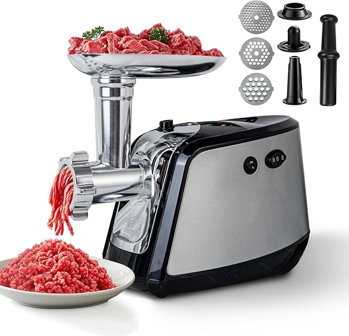 - 3 IN1 MULTIFUNCTIONAL MEAT GRINDER: Equipped with a sausage stuffer tube and kubbe kit, the electric meat grinder for deer processing offers more versatility for different recipes. Effortlessly make meatballs, sausage, hamburger. Great kitchen tool for food lovers & housewives