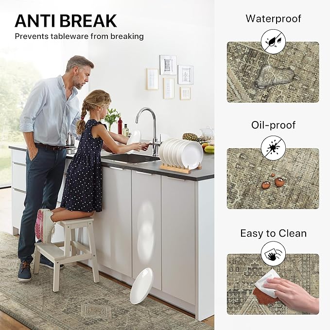 - Non Slip & Easy to Clean: GENIMO anti fatigue kitchen mats feature a non slip backing and checkered surface that ensures robust traction on a multitude of floor surfaces as well as your feet, alleviating the likelihood of accidental slips. Their easy-to-clean surface allows for quick maintenance, ensuring your kitchen remains pristine. You could simply wipe the washable rug with a damp cloth or vacuum for lasting cleanliness and tidiness