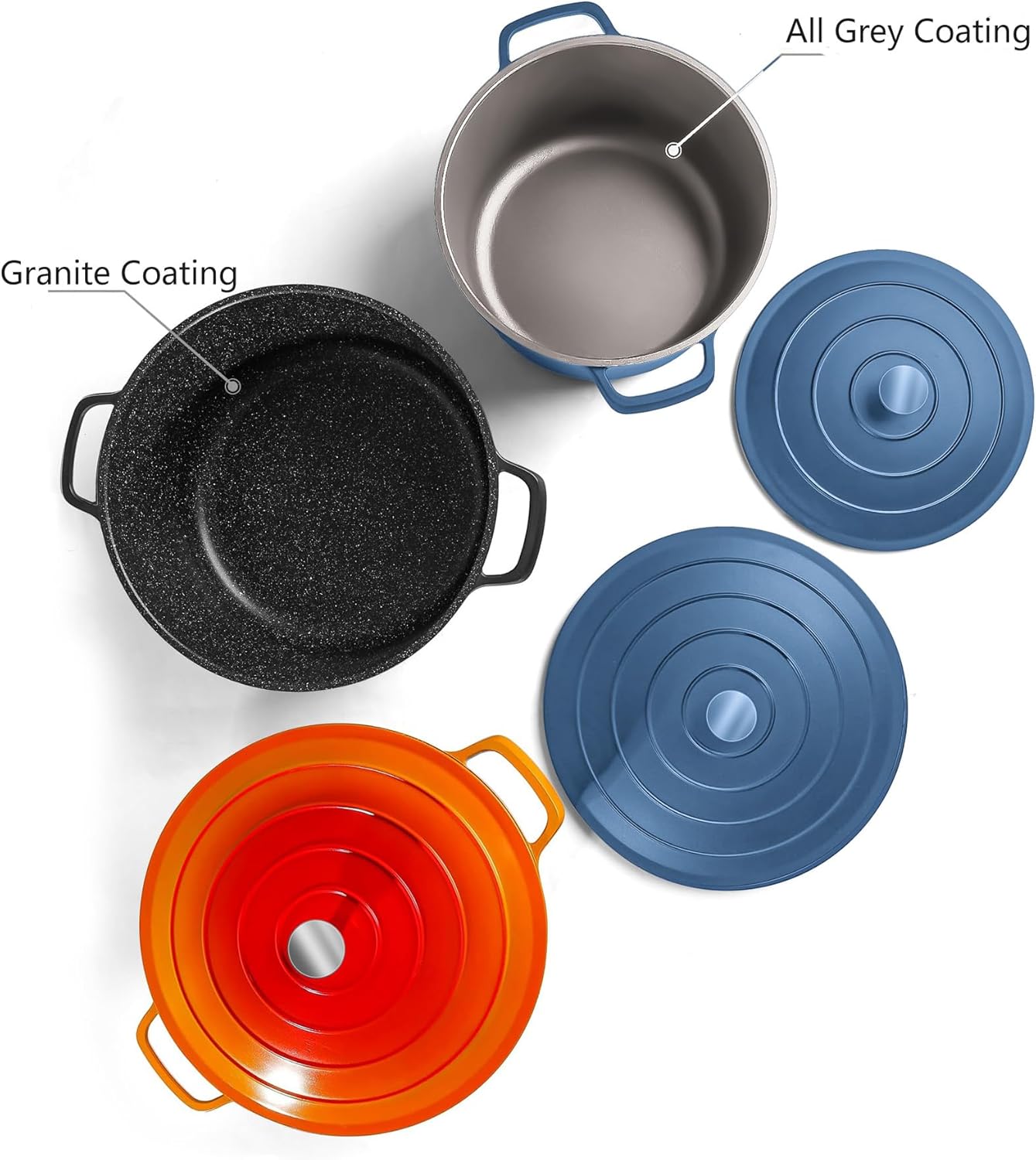 Large Dutch Oven Pot with Lid-7.5QT Cast Aluminum Oven Pot with Two Handles Lightweight for Bread Baking Braising and Roasting(Blue)