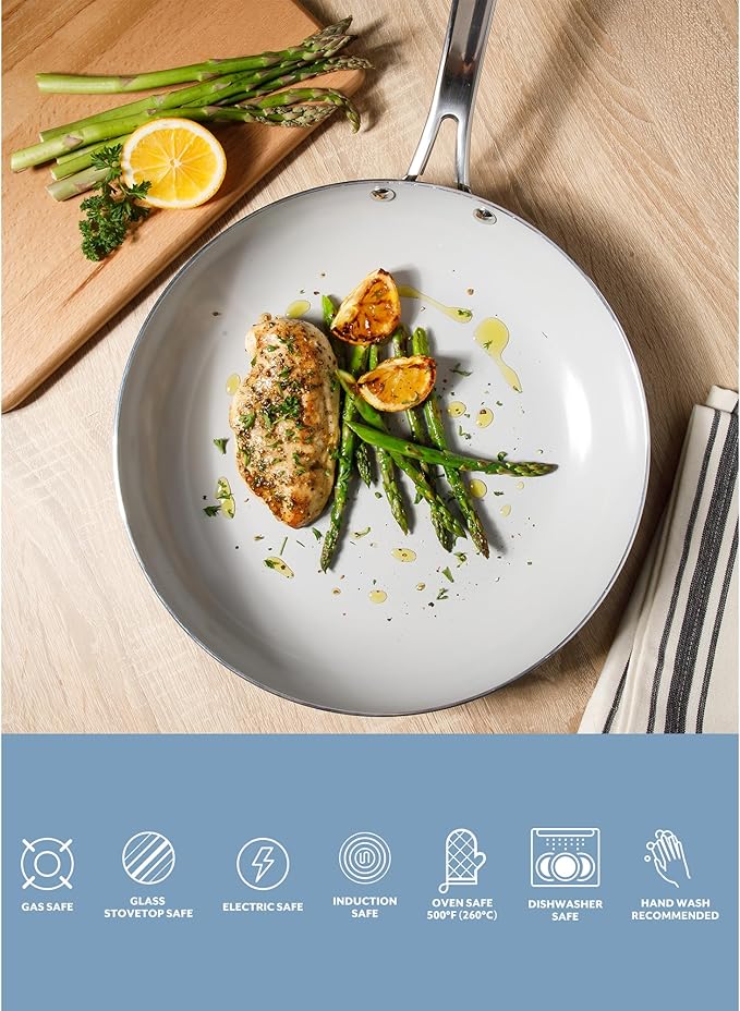 - CERAMIC NONSTICK COOKWARE: easy-release interior makes more room for healthier cooking options and less time for cleanup.