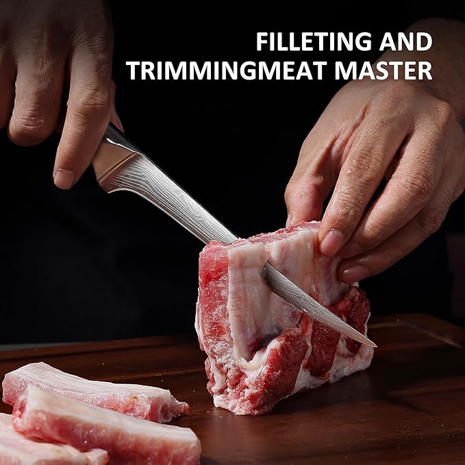 - ROFESSIONAL FILLET KNIFE: Perfectly engineered fillet knife tapered to a razor-sharp edge for effortless filleting, de-boning, trimming, skinning and butterflying of different types of fish & meat. YOTSUBA focused on hand-forged kitchen knife manufacturing, pursuing quality and skill for many years. Professional fillet knives will be your dependable companion, easy cooking effortless