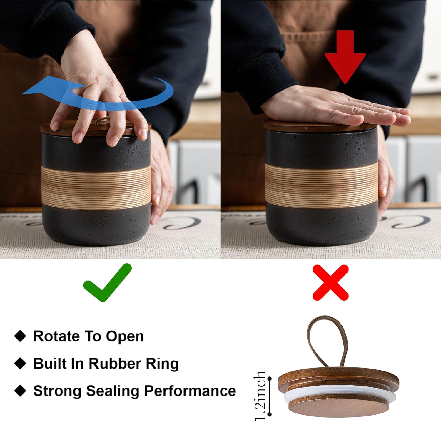 Small Ceramic Jar with Lid, Coffee Container Kitchen Food Storage Jars for Spice Sugar Tea Bag Matcha Container Airtight, Stacairtightkable Decorative Jars for Countertop, Black & 5 fl.oz