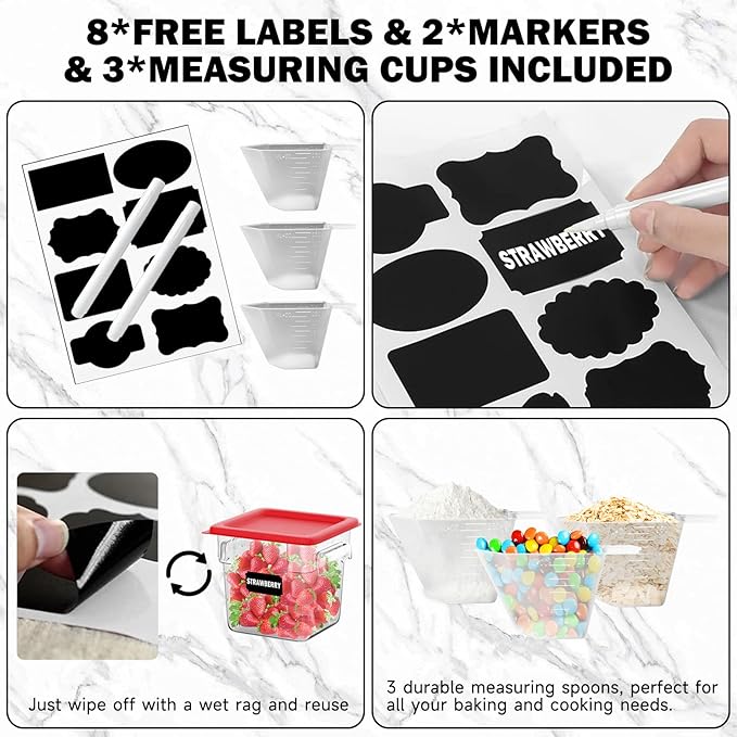 - 【FOOD STORAGE CONTAINER SET】: SVKLHY clear food container package includes 2*6qt square food storage containers with red lids, 8*free lables, 1*marker and 2*measuring cups. Additional accessories do better cater to a variety of usage needs and scenarios, enhancing the overall user experience.