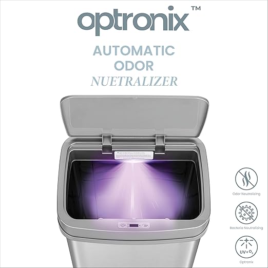 Ninestars Nova Series 13 Gallon Odor Elimating Automatic Kitchen Trash Can Automatic Odor Control Motion Sensor Garbage Bin, 50 Liter Smart Opening Stainless Steel, Silver