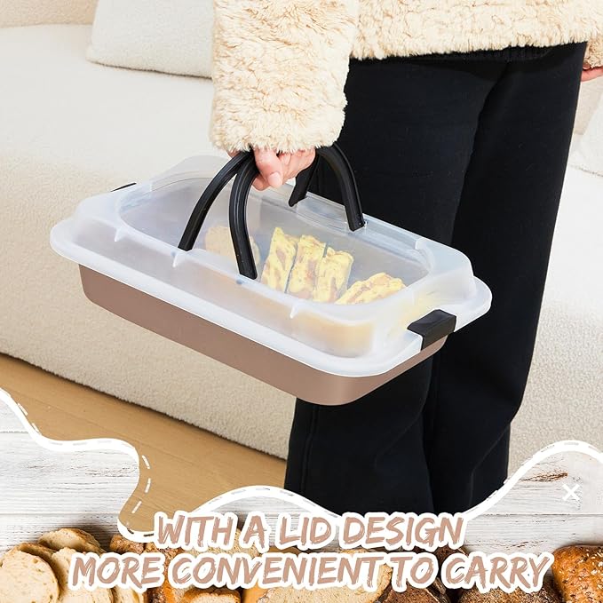 - Proper Size for Everyday Baking: with an outer size of 14.4 x 9.7 x 2.2 inches(LxWxH), these cake pans with lids provide ample space for your baking needs; Whether you're making a savory roast or sweet treats, our pans are designed to accommodate various types of recipes