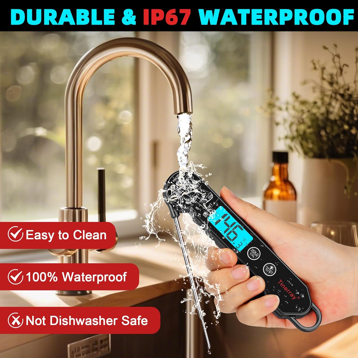 - ăWaterproof & Easy to Clean ă Rated IP67 waterproof, this digital meat thermometer can be safely rinsed under running water for effortless cleaning. (Note: Do not soak or submerge in water.) Built with durable ABS plastic, it withstands accidental drops