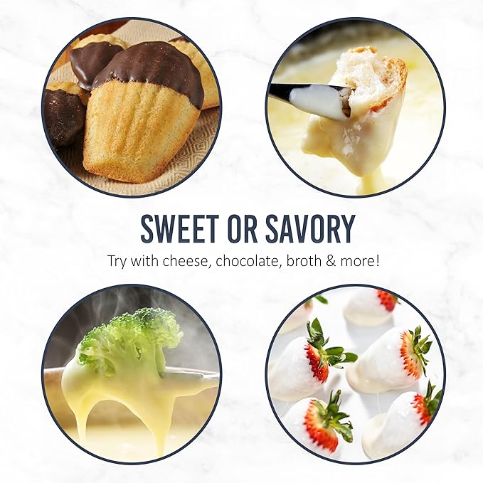 - VERSATILE FONDUE EXPERIENCE: Enjoy a wide variety of fondue recipes with our electric fondue pot set. Create delicious desserts or savory appetizers with ease, making it an ideal choice for entertaining guests or spending quality time with family.
