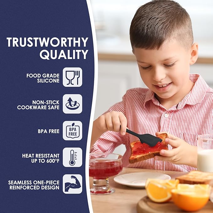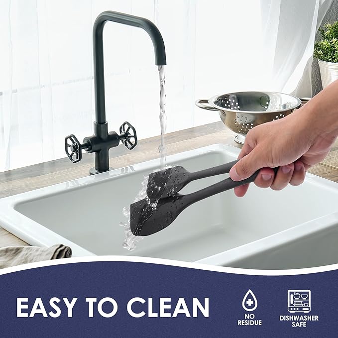 Heat Resistant 600℉ Silicone Spatula, BPA Free Mixing Spatulas set Dishwasher Safe for Nonstick Cookware, Black