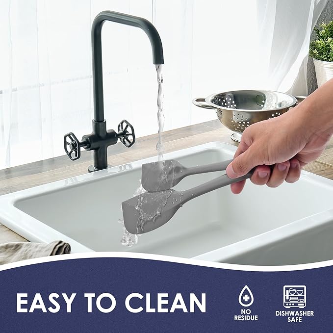 Heat Resistant 600℉ Silicone Spatula, Turner Mixing Spatulas set BPA Free Dishwasher Safe for Nonstick Cookware, Grey