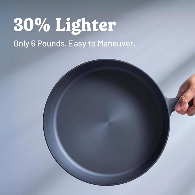 - Lightweight cast iron skillet: This 12 inch cast iron skillet is 20% lighter than traditional ones, weighing just 6 lbs. Perfect as a camping skillet or for everyday use, it's ideal for those who want the benefits of cast iron cookware without the heft.