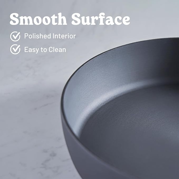 - Enhanced Durability: With a 12-hour nitriding treatment, this iron skillet offers exceptional durability, hardness, and rust resistance, ensuring it's safe for metal utensils and ideal as an oven safe skillet.