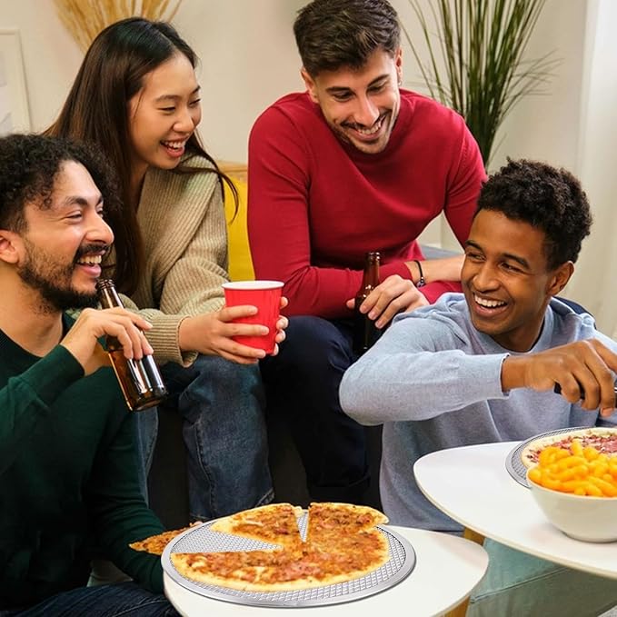 - Package Content: This pack of round aluminum pizza sheets with holes includes 8 pieces, providing an ample supply for your pizza-making needs. Whether you are a professional chef or a home cook, this quantity ensures that you always have a screen on hand when needed. With this pack, you can make multiple pizzas, chilling them instantly to enjoy with family and friends.
