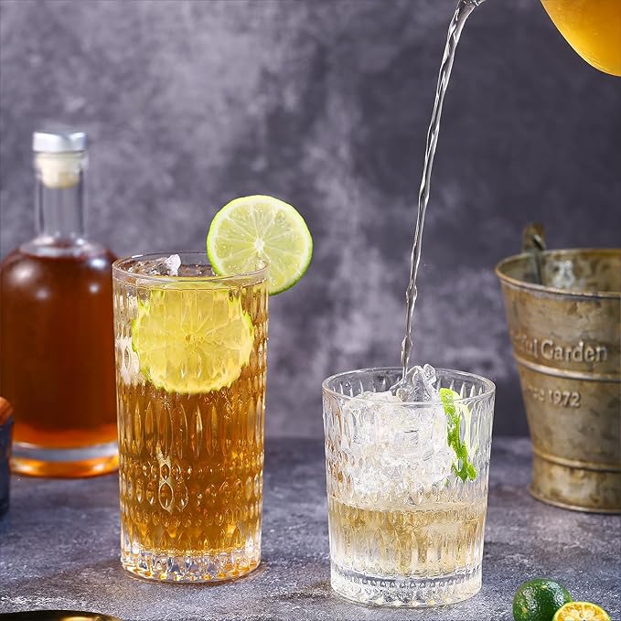 - Versatile Glassware: These old fashioned highball water glasses are perfect for a variety of beverages, everyday casual dining and all entertainment, including beer, cocktail, whiskey, margaritas, water, juice, wine, and martinis, making them ideal for any occasion.