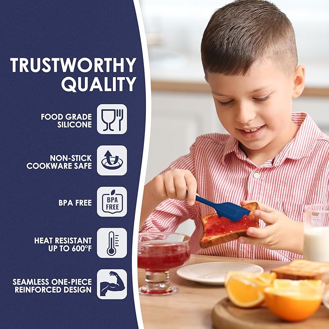 Heat Resistant 600℉ Silicone Spatula, Turner Mixing Spatulas set BPA Free Dishwasher Safe for Nonstick Cookware, Classic Blue