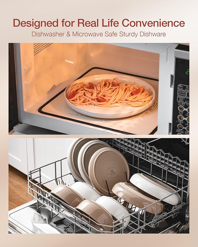 - 【DISHWASHER AND MICROWAVE SAFE】Our dishes have passed microwave and dishwasher safe testing at internationally accredited laboratories. Each plate and bowl is dishwasher safe and microwave safe.