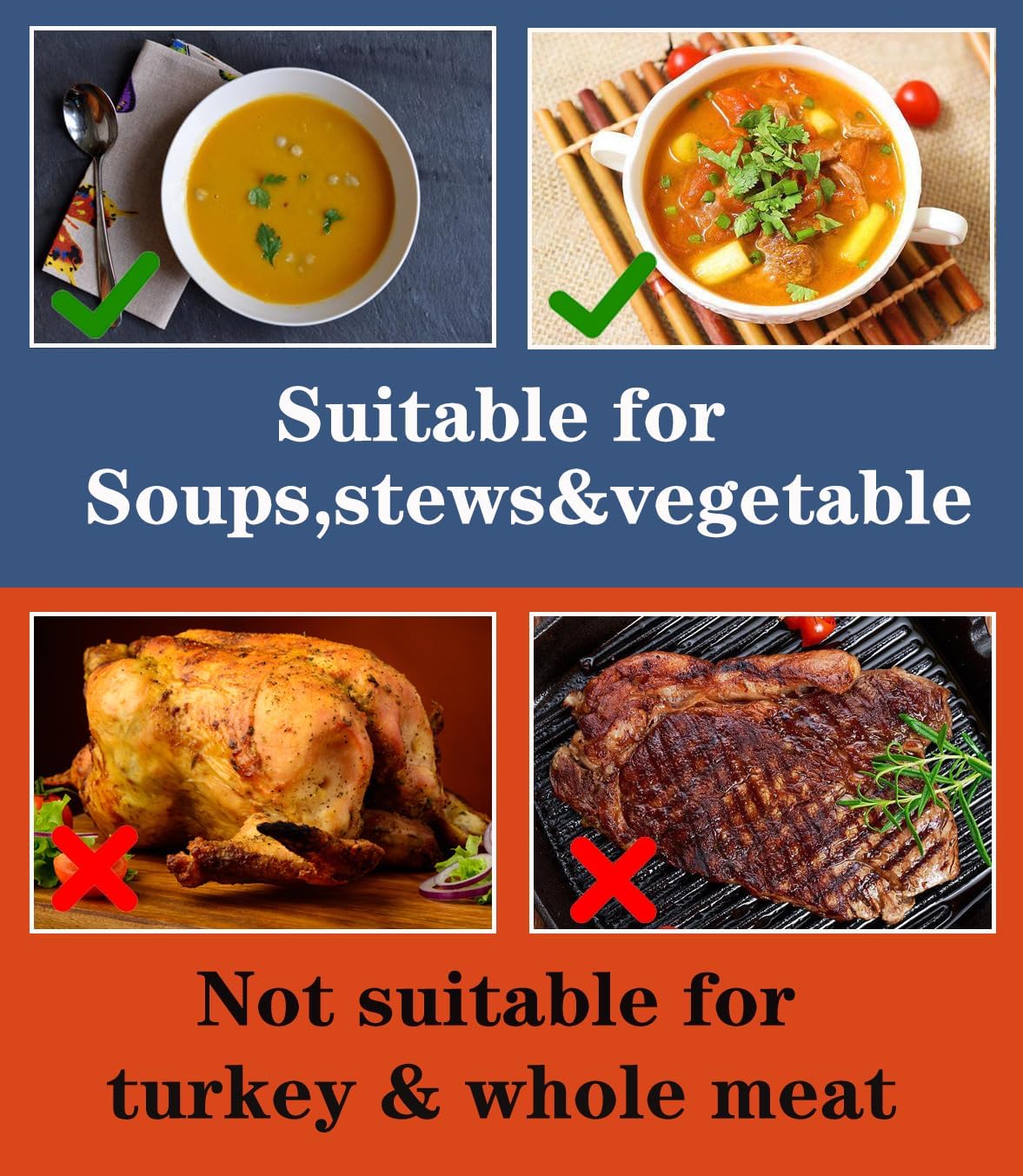 - 4.For Stews & Casseroles – Designed for stews, casseroles, and chili, these liners are not suitable for whole meats like chicken, turkey, or steak. To prevent melting, add water to the roasting pan and preheat for 3 minutes before use.