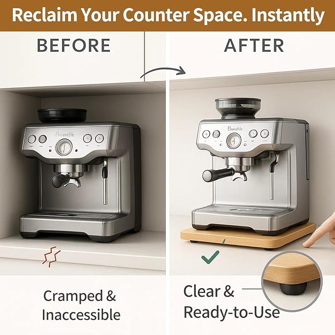 - ELEGANT & FUNCTIONAL UPGRADE | Elevate your kitchen's aesthetic with the warm, natural look of this premium bamboo coffee slider. A beautiful and practical appliance caddy that streamlines your daily routine. Click 'Add to Cart' now for a smarter, more elegant kitchen workflow.