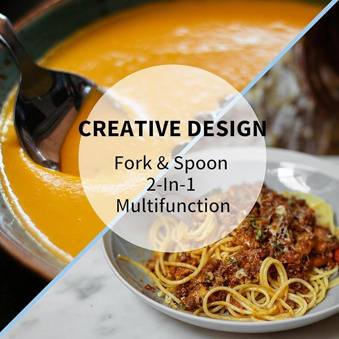 - Creative Design: Sporks feature a curved bowl, can replace cutlery spoons and forks, which is a smart combination of spoon and fork. The creative design is more comfortable and practical to use. Perfect for everyday use, such as soup,ice cream,salad, fruit, dessert, noddles, spaghetti