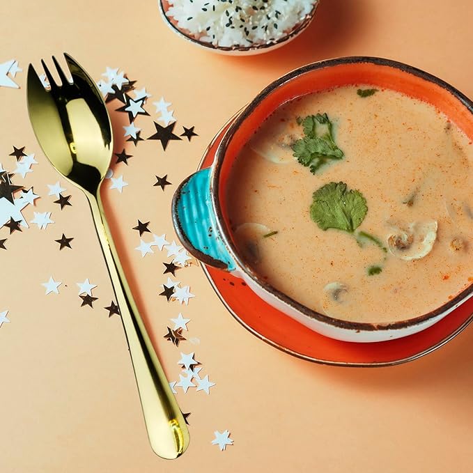 - 8pcs Included: Champagne Gold Mirror Sporks Stainless Steel, The perfect combination of spoon and fork, smooth edges, stylish serving utensils elevates everyday meals into a fine dining experience