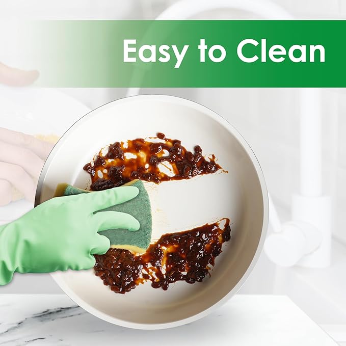 - Easy to Clean: Double sided ceramic nonstick cookware set make cleaning easy, A quick rinse or wipe will easily remove any residue, keeping your cookware spotless and in perfect condition effortlessly