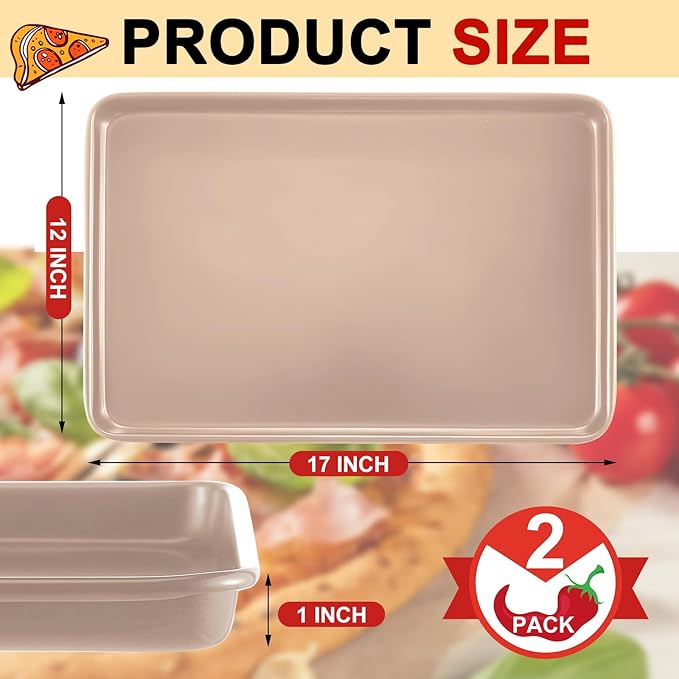 2 Pcs 17 Inch Grandma Style Pizza Pan Hard Rectangular Gold Non Stick Sicilian Style Carbon Steel Pizza Pan Dish Pre Seasoned Bakeware Kitchenware
