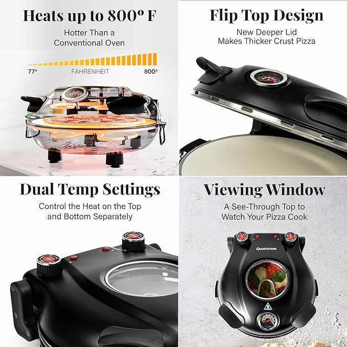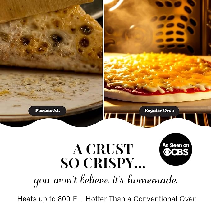 - HEATS UP TO 800˚F: Get perfectly cooked pizza in under 6 minutes! Ovens typically only go up to 450-500˚F, preventing you from achieving the crispy crust that’s a pizzeria standard. The Piezano Electric Pizza Oven takes it all the way up to 800˚F so you get great crust results every time. horno de pizza