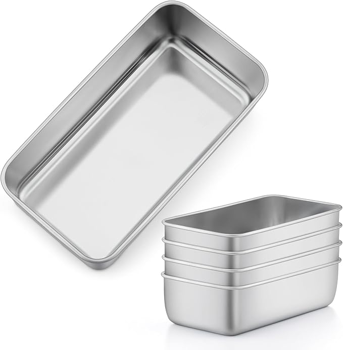 - Healthy material, bread loaf pans for baking bread is constructed of heavy duty food-grade stainless steel without chemical coating. It won’t peel off or produce harmful substances at high temperature, healthy bread pans for baking homemade bread, a great alternative to the foil, glass and aluminum one