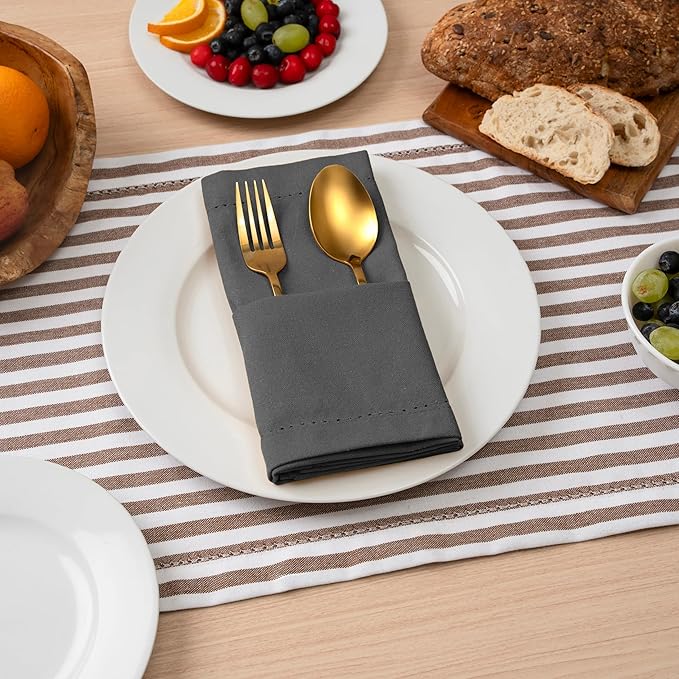 Blue Needles Set of 12 Hemstitch Linen Napkins 100% Cotton Grey Cloth Dinner Napkins 18x18 inches, Soft, Reusable, Absorbent, Washable, Ideal for Fall Thanksgiving Events, Parties & Everyday Use
