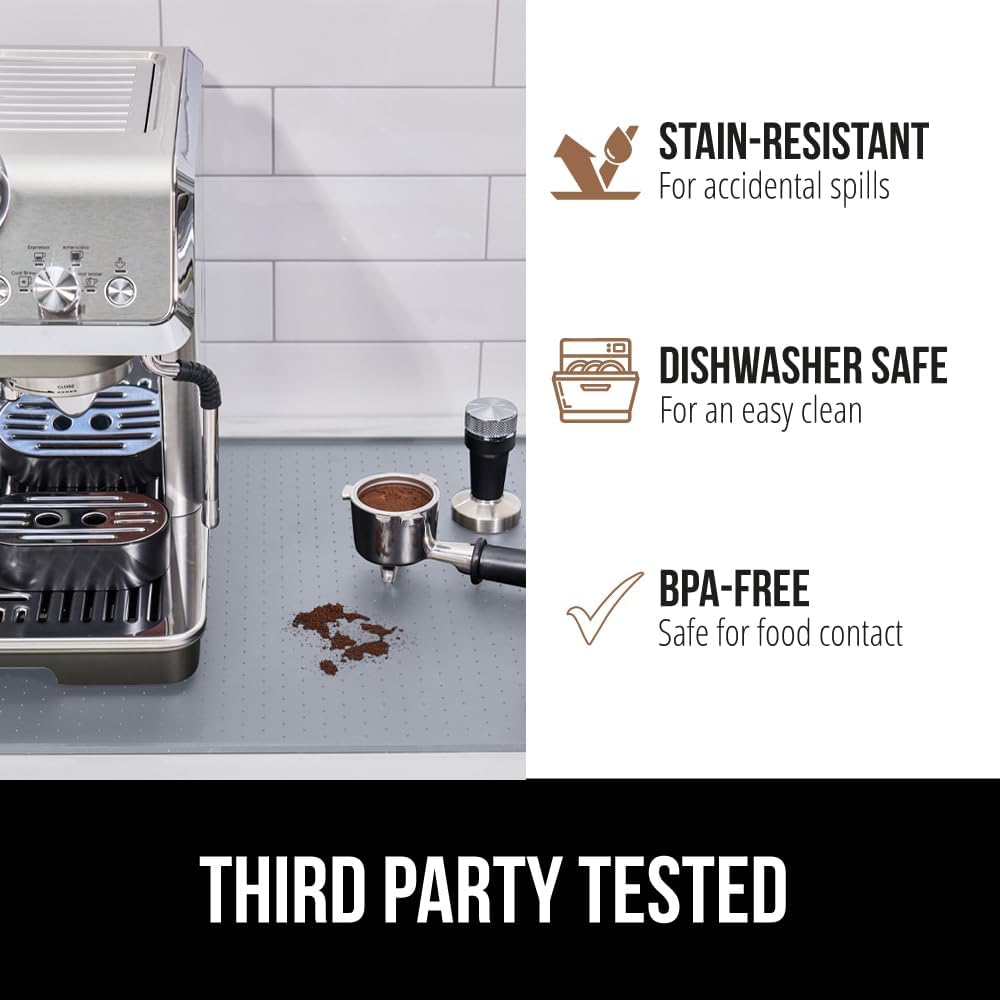 GORILLA GRIP Silicone Coffee Mat, 18x28, Espresso Drink Bar Station Accessories, Waterproof Heat-Resistant Dish Drying Mats, Stay in Place on Kitchen Counter, Home Kitchen Decor Essentials, Gray