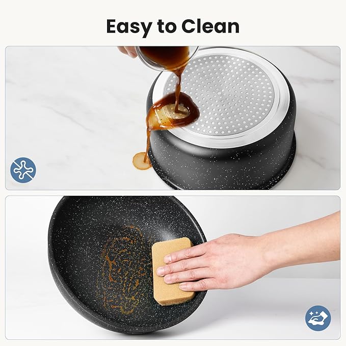 - Dishwasher Safe - It is free from potentially harmful chemicals, ensuring your meals won't be contaminated by any unwanted substances. Experience worry-free cooking with our safe and high-quality cookware set