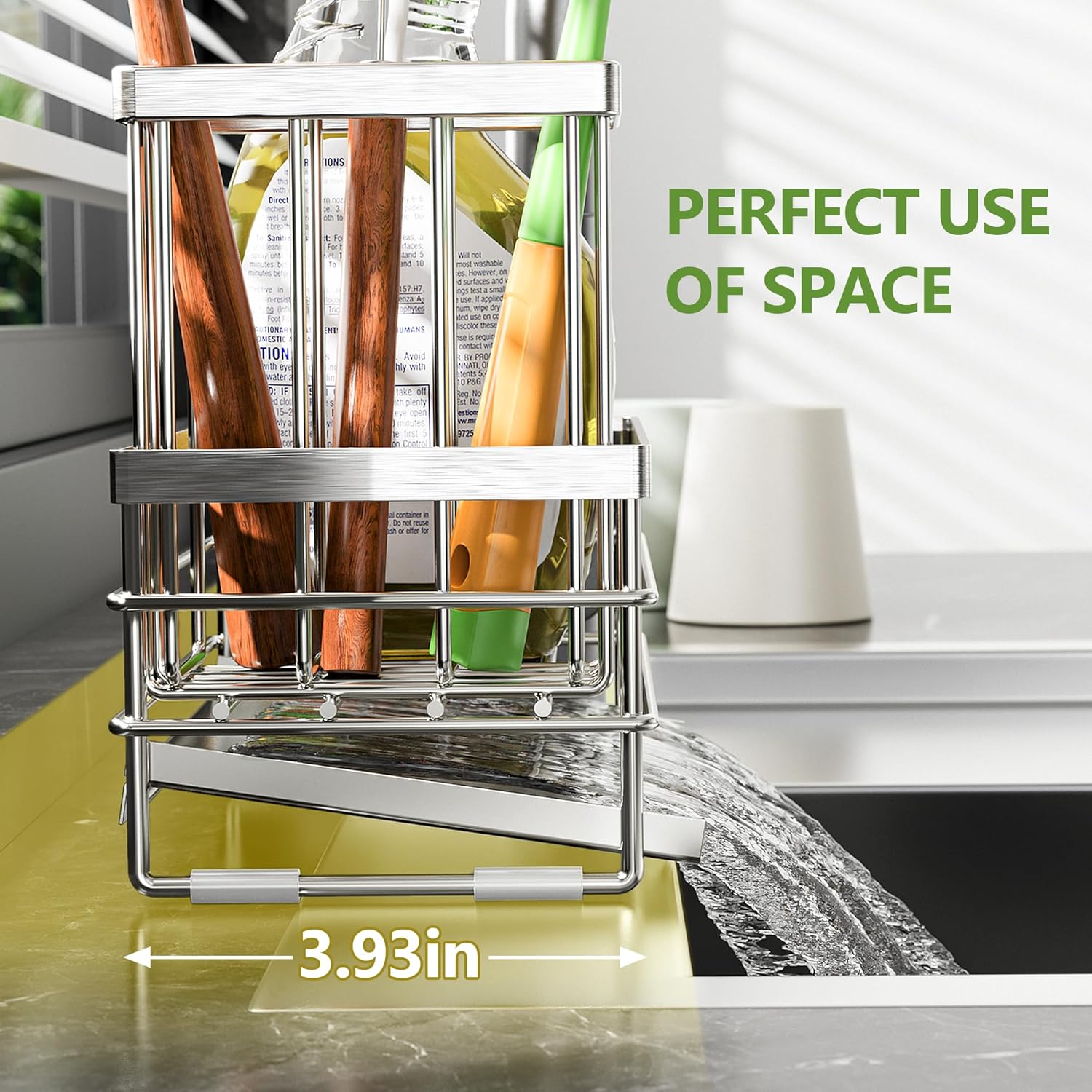 - STURDY MATERIAL: Constructed from premium stainless steel, this kitchen organizer resists humidity, providing long-term use without rusting. It's easy to clean with a quick rinse. Additionally, the sponge holder's exceptional durability prevents bending or warping, making it one of the dependable kitchen accessories in your kitchen.