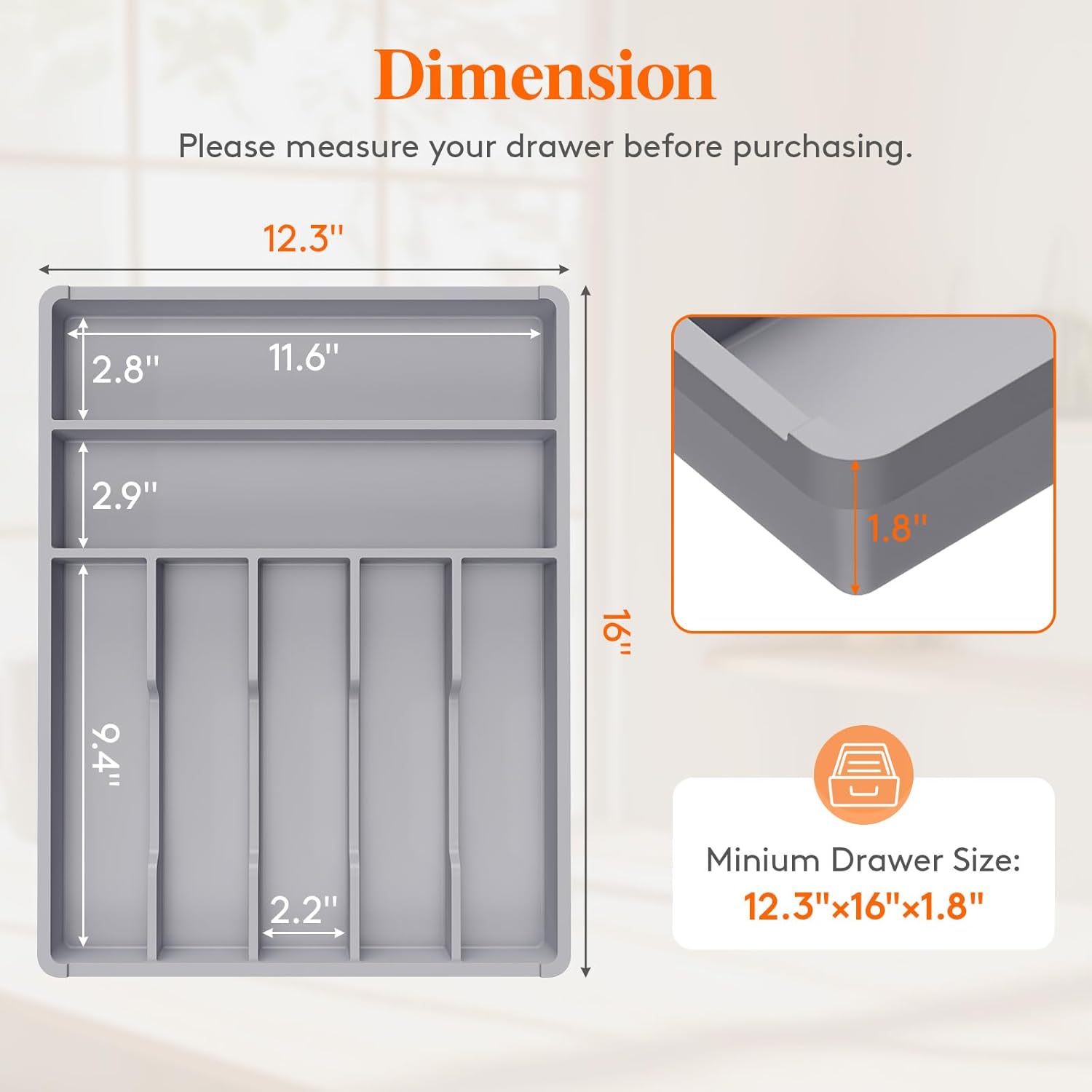 - Fit Most Drawers: Measuring 12.3 Ă— 16 Ă— 1.8 inches (31.3 Ă— 40.7 Ă— 4.6 cm), the Lifewit silverware organizer easily fits in most standard and small-sized drawers. This universal utensil drawer organizer helps you maximize storage space efficiently while keeping your utensils neatly organized and easily accessible