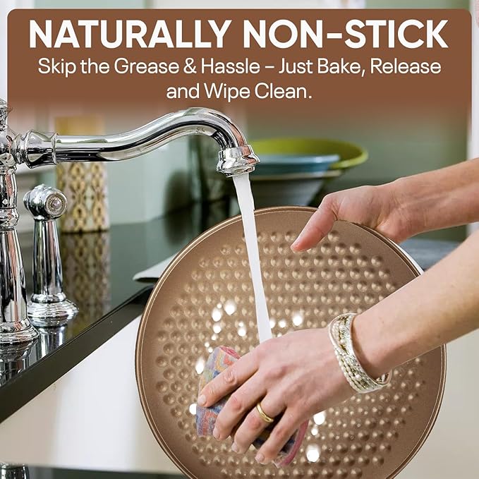 - NATURALLY NON-STICK: Our slick non-stick Circle Pans require less prep before baking and minimal scrubbing for a spotless clean, giving you a healthier and easier at home baking experience.