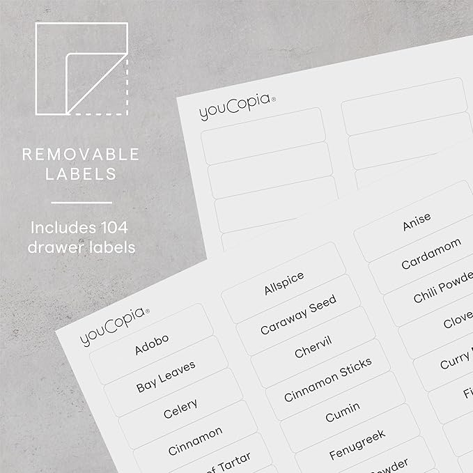 - QUICK SETUP: No installation or assembly required; just load spices and add drawer labels