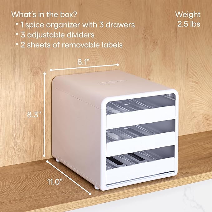- SPICES WITHIN REACH: Three pull-down drawers bring 18+ spices (not included) to eye level while non-slip feet keep the spice rack in place