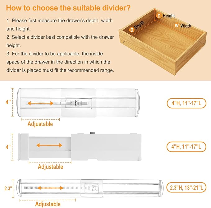 - [Note Before Purchasing]: To avoid size incompatibility issues, please carefully measure your drawer's inner dimensions before purchasing. The inner height is at least 4" tall and the inner depth and wide is at 10"-17"