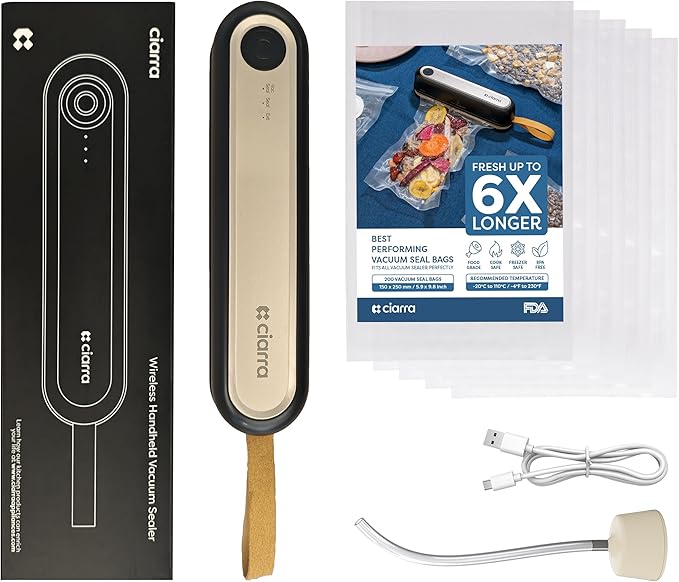 CIARRA Handheld Vacuum Sealer – Portable Food Preservation Machine with 3 Modes, Compact Automatic Sealing System for Dry & Wet Foods (Vacuum Sealer + 5 Pcs Vacuum Seal Bags)
