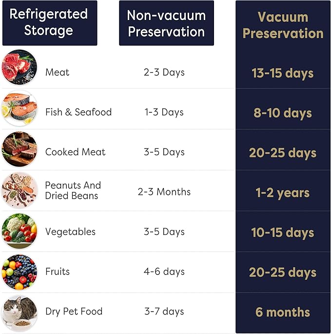 - 6 Seconds to Complete Vacuum Sealing: Powerful 60 kPa suction can shorten the sealing time, retain the nutritional value and moisture of food, and reduce food waste
