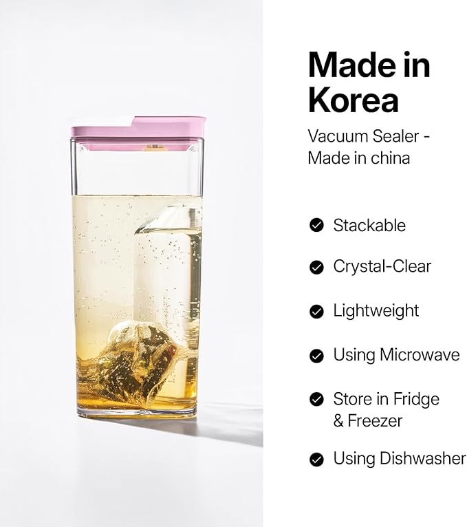 VAKUEN Premium Airtight Water Pitcher ROSE Pink lid, 1.4L(1.48qt) 1pcs, Airtight seal and Vacuum, Leak-free, BPA-free