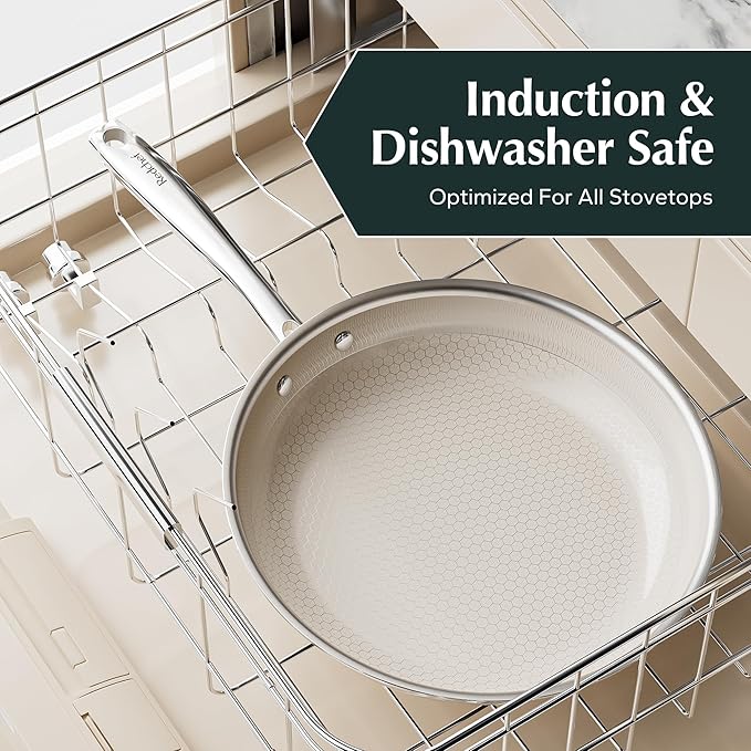 - BV mark Hybrid Nonstick Surface: Laser-etched hexagonal design ensures optimal food release and scratch resistance