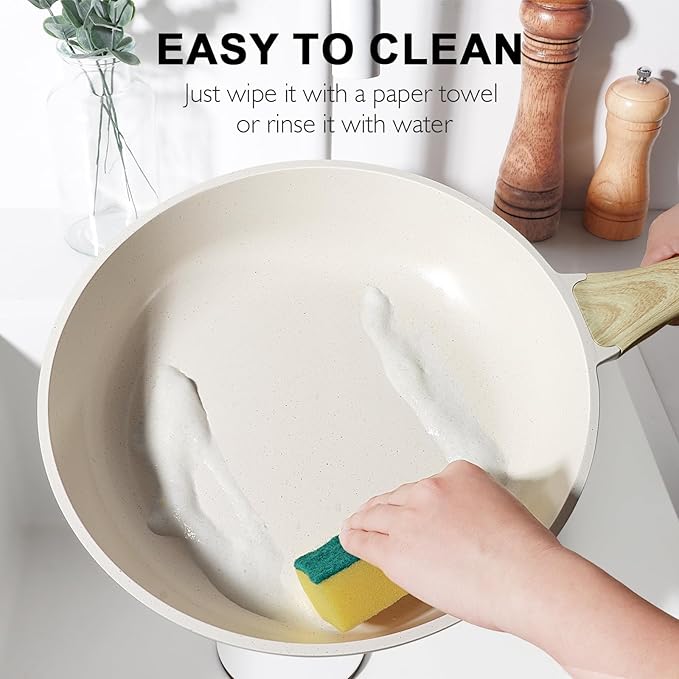 - Ceramic Non Stick - Food slides off effortlessly, less oil needed for healthier cooking with this ceramic pot and pan