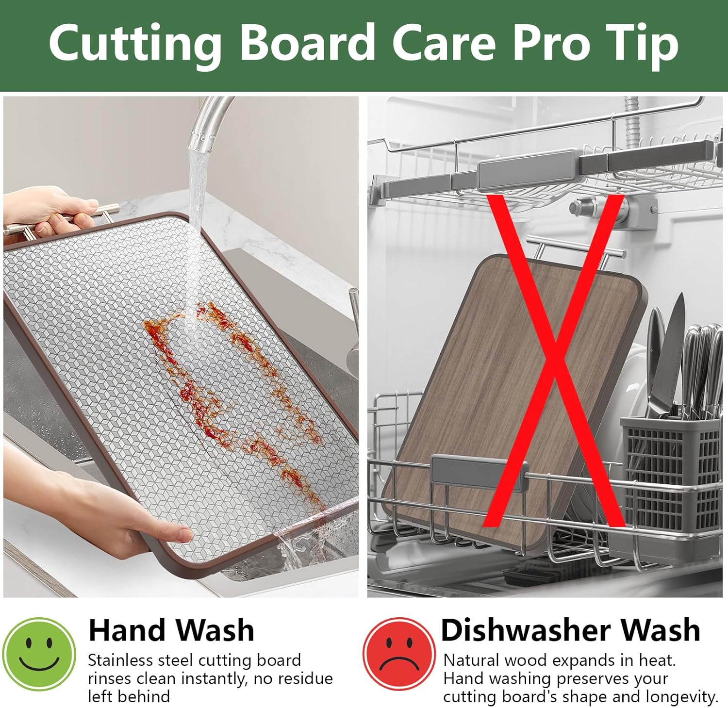 - Effortless Maintenance & Smart Features: Labeta cutting boards clean easily with just soap and water! The deep juice groove traps liquids and debris, keeping counters tidy. Sand-finished ebony resists knife marks, while the stainless steel hanging handle offers space-saving storage or portability for kitchens, RVs, or camping.