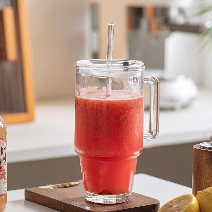- Convenient Handle for Easy Grip: Designed with a comfortable handle, this clear glass tumbler is easy to hold and carry. The perfect companion for your morning iced coffee or afternoon smoothie, ensuring a secure grip while you enjoy your drinks.