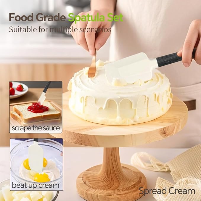 - 🥞Widely Scenarios🍲 The kitchen utensils set include 4 cream spatulas which can meet all your needs, the sizes and shapes cover a wide variety of uses, such as flipping pancakes, making scrambled eggs, cleaning mayonnaise jars, stirring dough or cookie batter and making cakes.