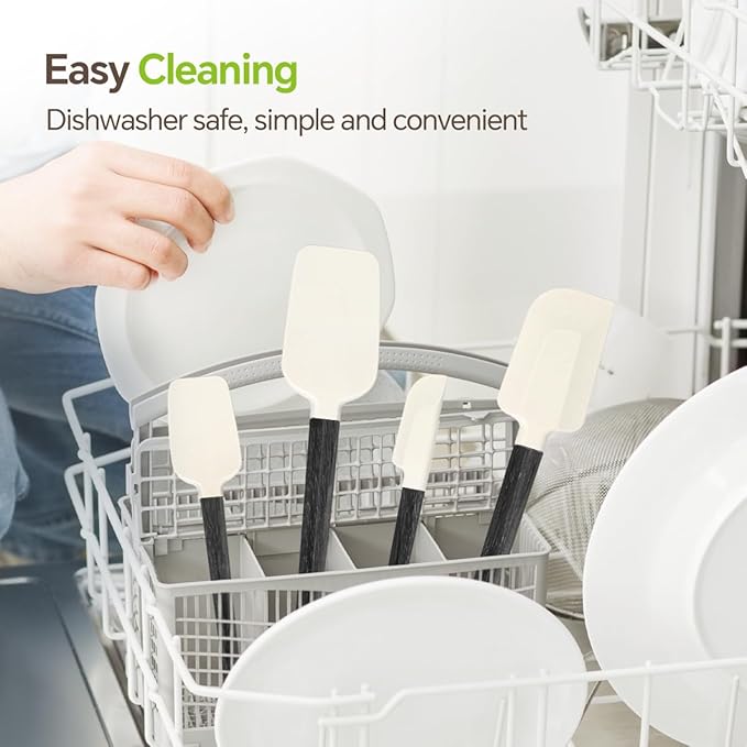 - 🥞Premium 100% Food Grade Silicone🍲 The off-white silicone spatula set is made of healthy and friendly material, resistant to high temperatures up to 600 °F. No more melting, cracking and non-stick surface, whether cooking, baking, decorating or mixing use spatula, which are are safe, good for your health.