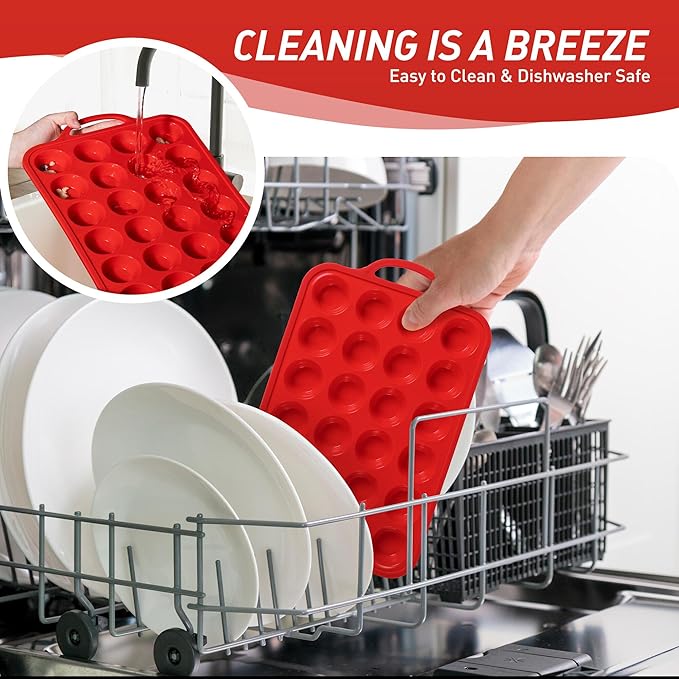 - 【Effortless Release Every Time】Experience 1-second demolding! Simply press the flexible food-grade silicone base to pop out cupcakes intact - no scraping or greasing required. Ideal for sticky recipes like caramel pecan muffins or gooey chocolate lava cakes. Our baking cupcake muffin pan can be safely placed in the dishwasher, and the silicone baking cupcake muffin pan material reduces oil residue by 85% compared to metal baking pans, making it easy to rinse even with simple running water.